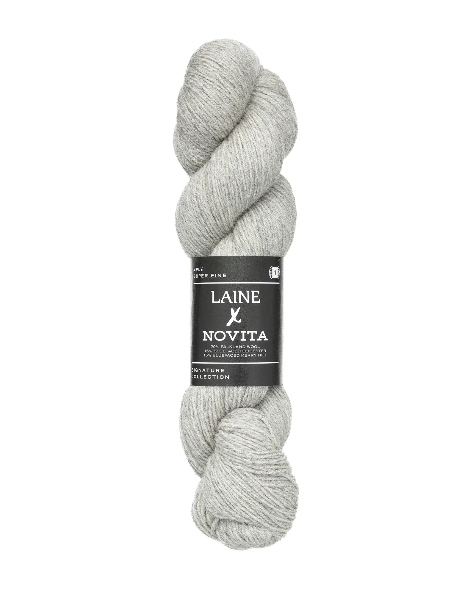 The spirit of Laine magazine in yarn form. Developed in close collaboration with Novita, Laine x Novita is a beautifully balanced, high-quality yarn made from the finest British fibres: Falkland wool, Bluefaced Leicester and Bluefaced Kerry Hill.