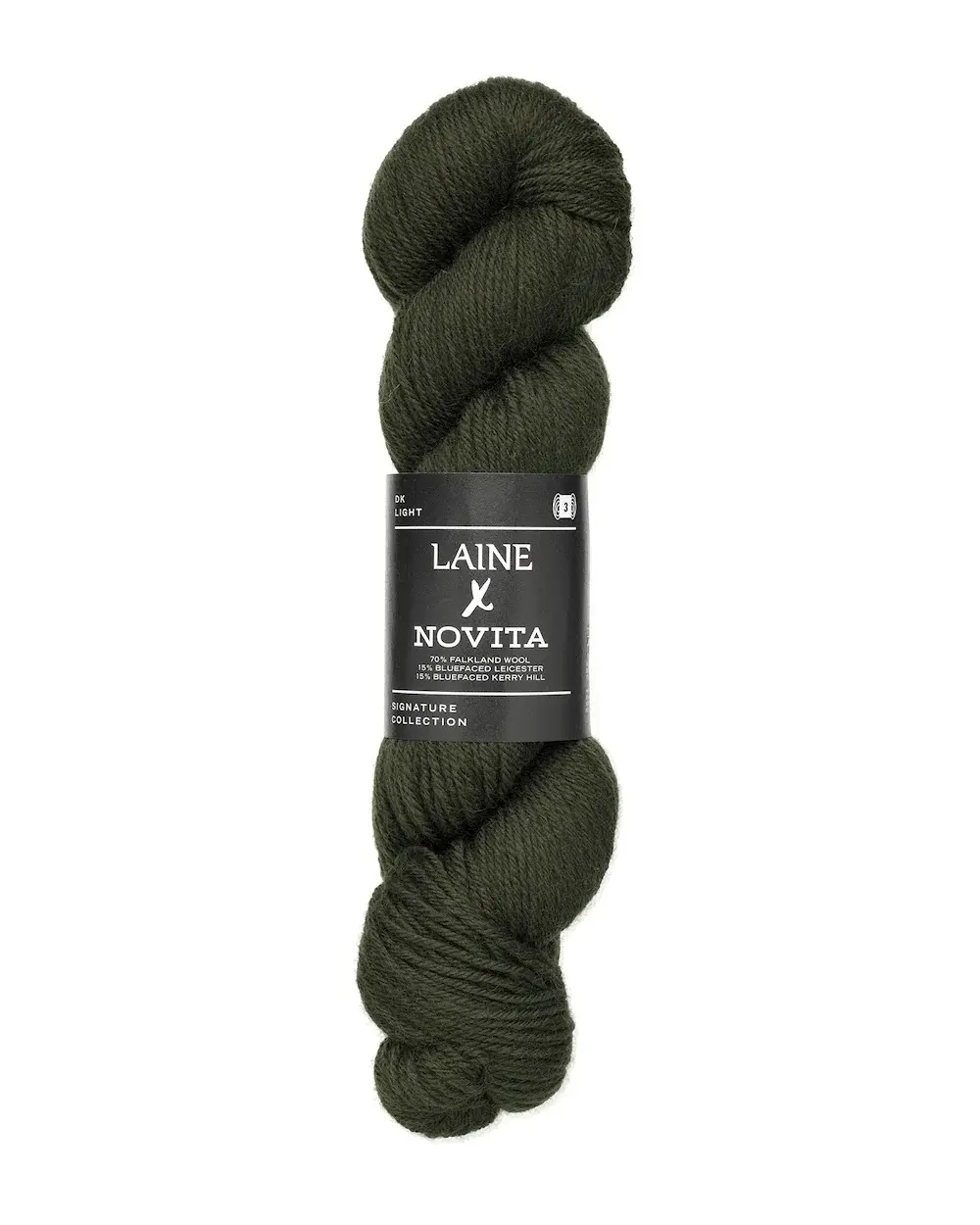 The spirit of Laine magazine in yarn form. Developed in close collaboration with Novita, Laine x Novita DK is a beautifully balanced, high-quality yarn made from the finest British fibres: Falkland wool, Bluefaced Leicester and Bluefaced Kerry Hill.