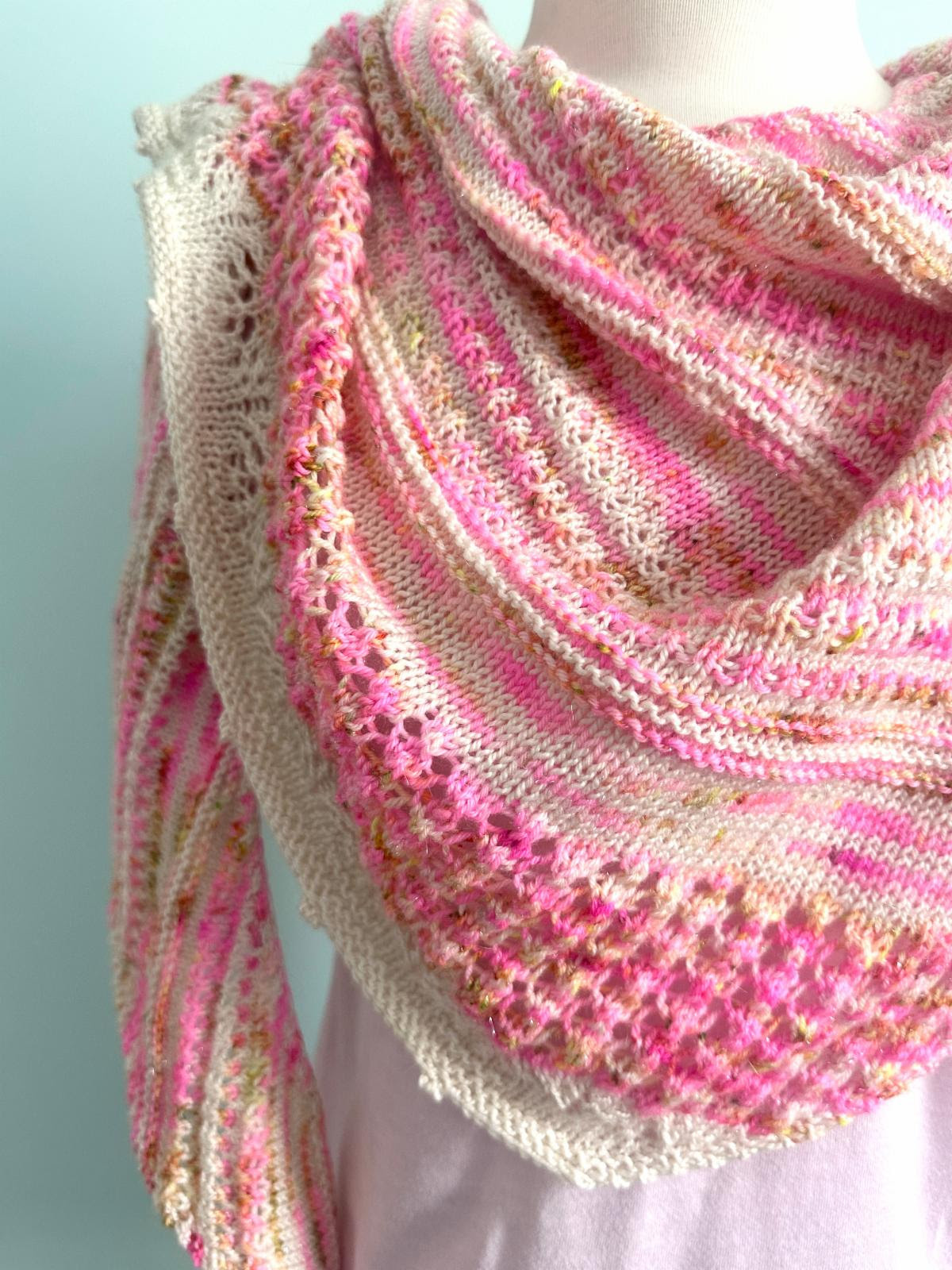 Cathy is knitting our sample in Woolerton Estates The Squiggler and Koigu KPPM.