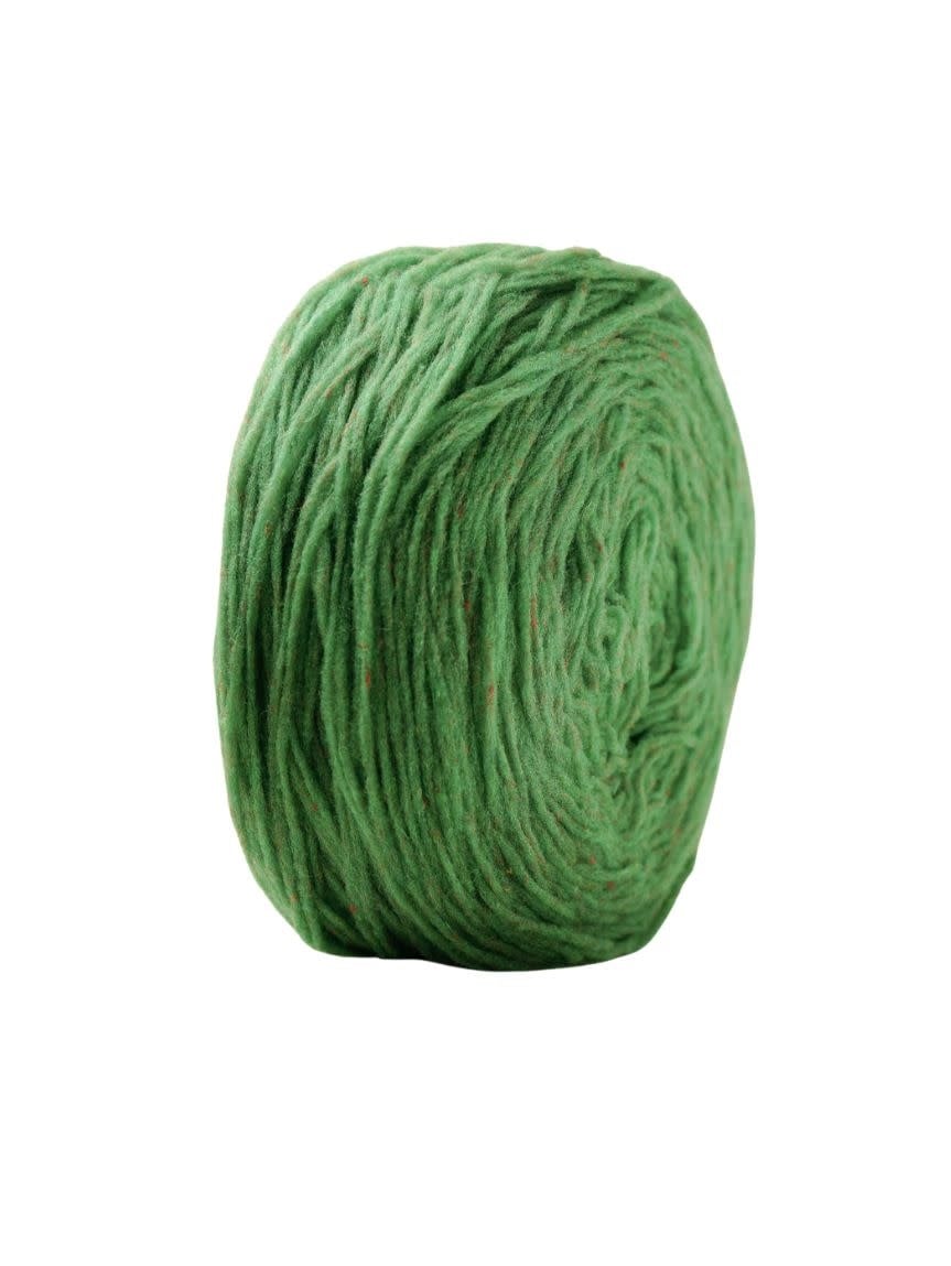 Manchelopis is wound into plates as a 2 ply, creating an aran weight yarn. With some skill, it can be separated into a single strand creating the equivalent to a fingering weight.
