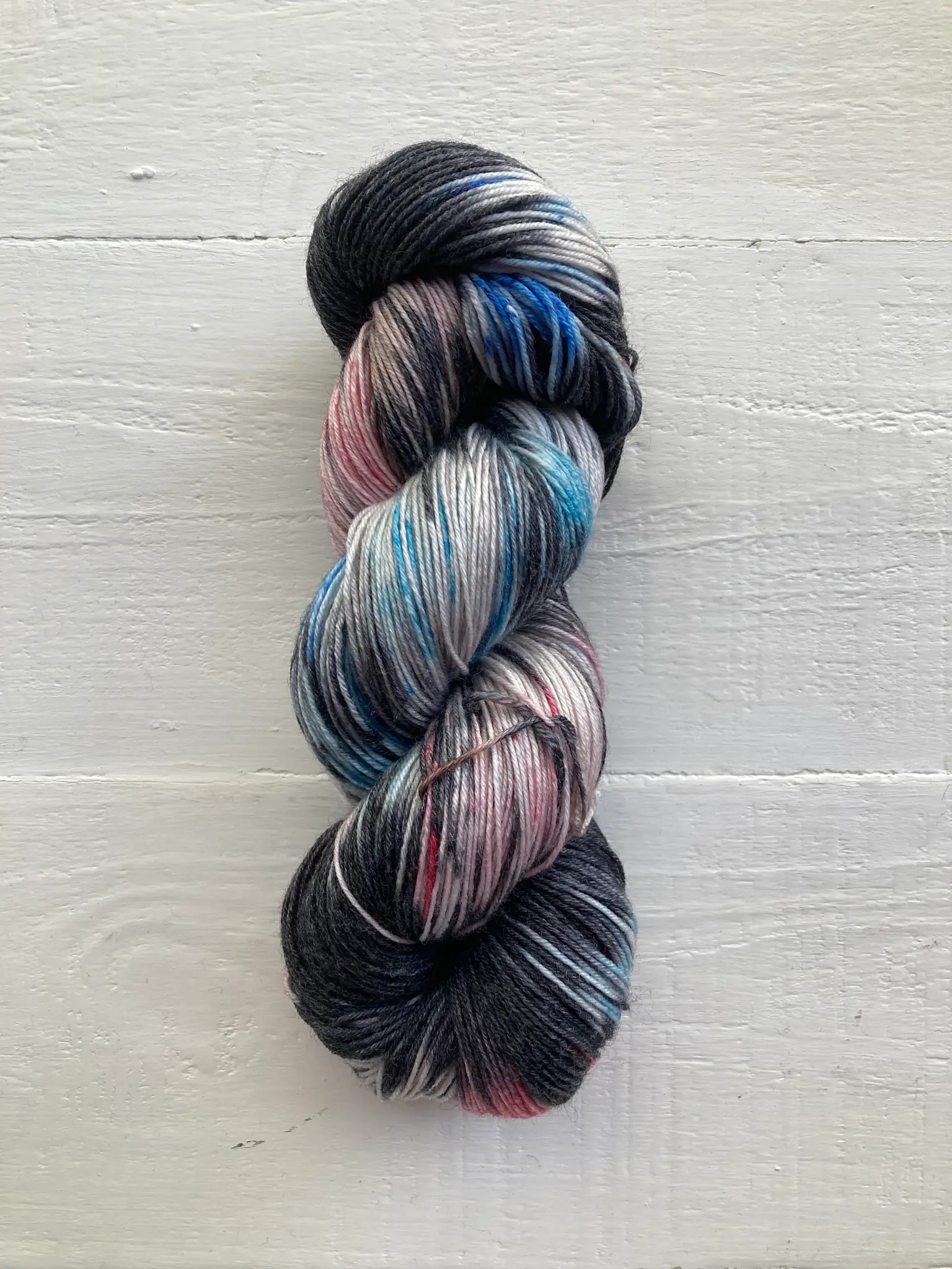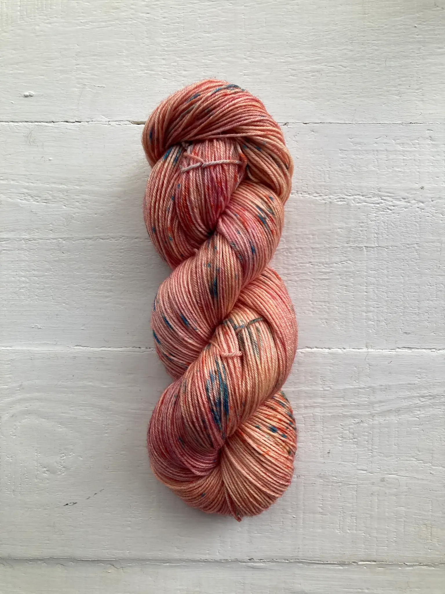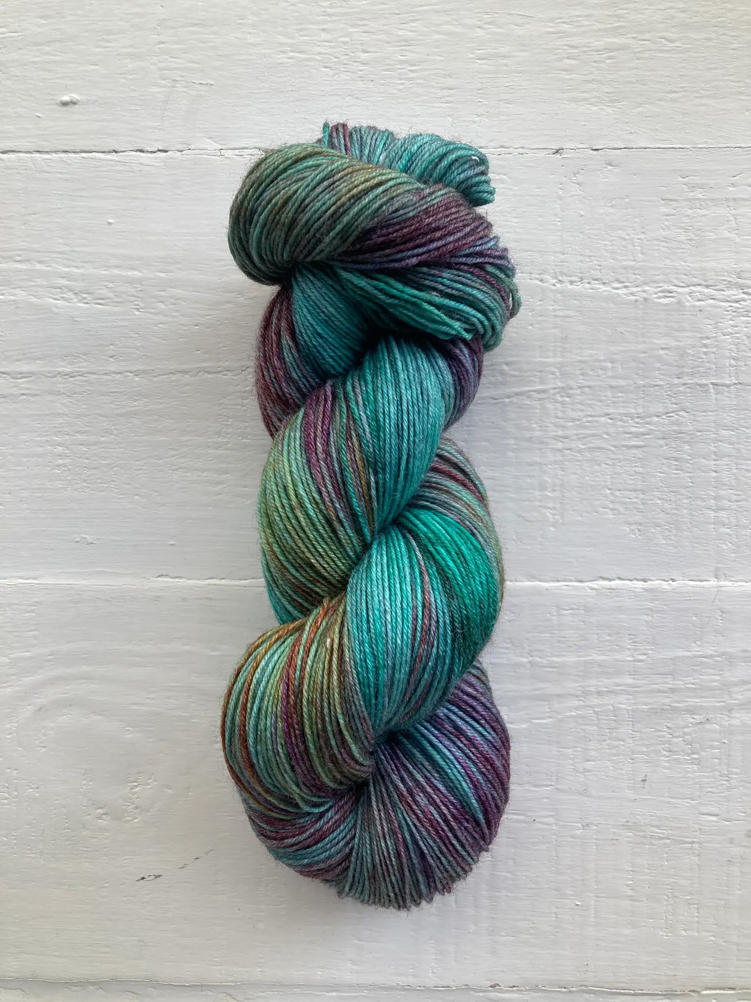 The merino brings the classic softness and bounce, while the bamboo adds breathability, increases strength, and drape creating a luxurious yet durable fabric. Its smooth, high-twist structure highlights stitch definition beautifully, and its sheen and drape make it equally suited for lightweight garments, shawls, and wraps.