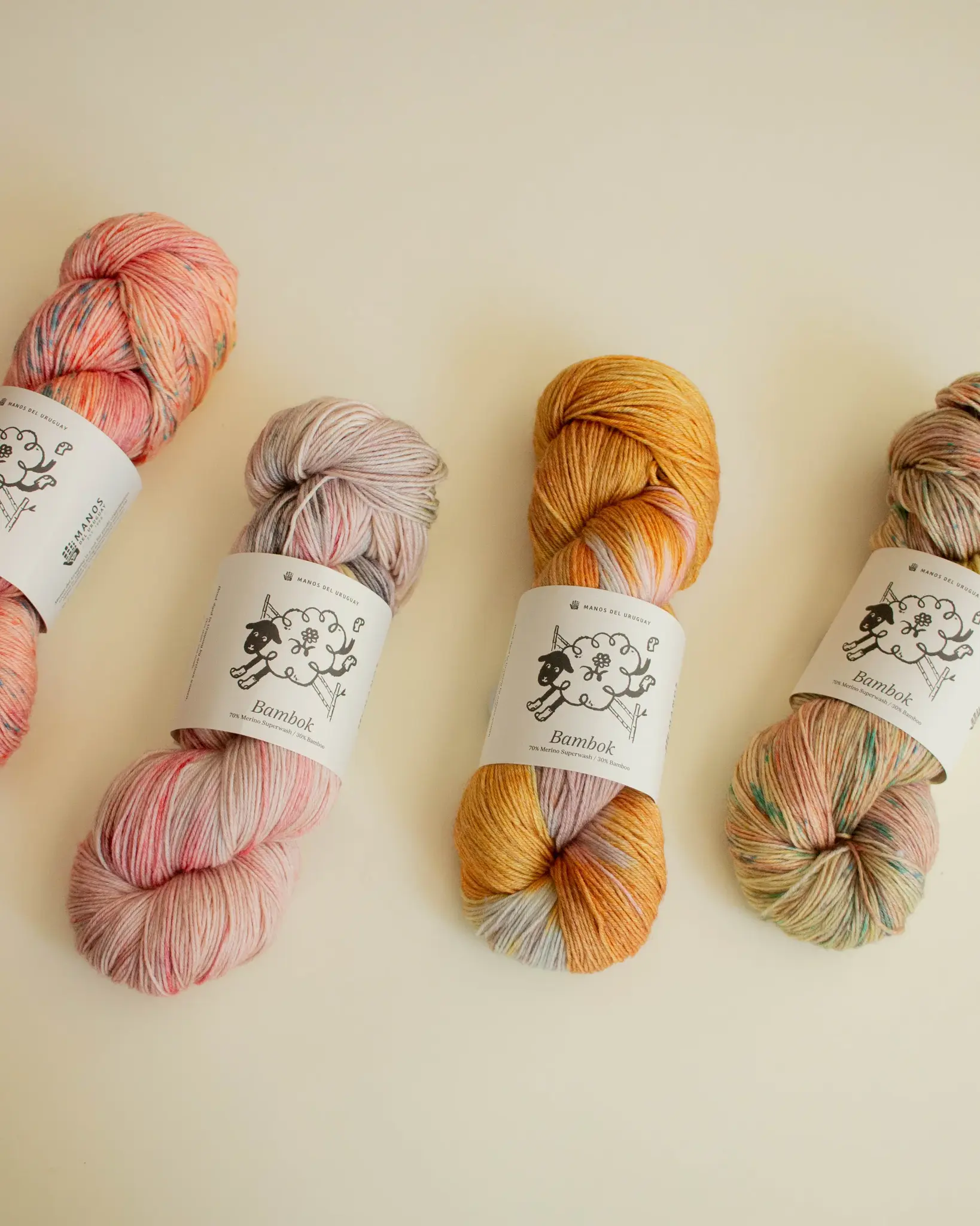 Introducing Bambok, a merino and bamboo yarn in 10 stunning space-dyed colours. Blending 70% superwash merino with 30% bamboo, Bambok delivers softness, resilience, and just the right touch of shine.