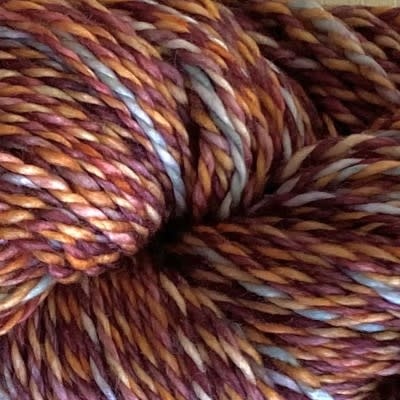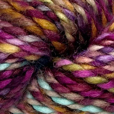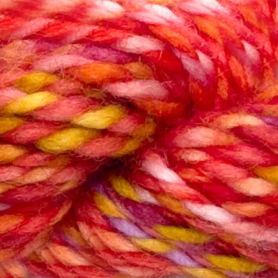 Marla is made from two strands of lighter-weight yarn that have been dyed in the wool and then plied together. The gorgeous colours of this 2-ply "Barber Pole" style yarn create and effect similar to handspun or Spin Cycle Dyed in the Wool. When worked, Marla creates a marled fabric, where the colours are uniquely distributed.