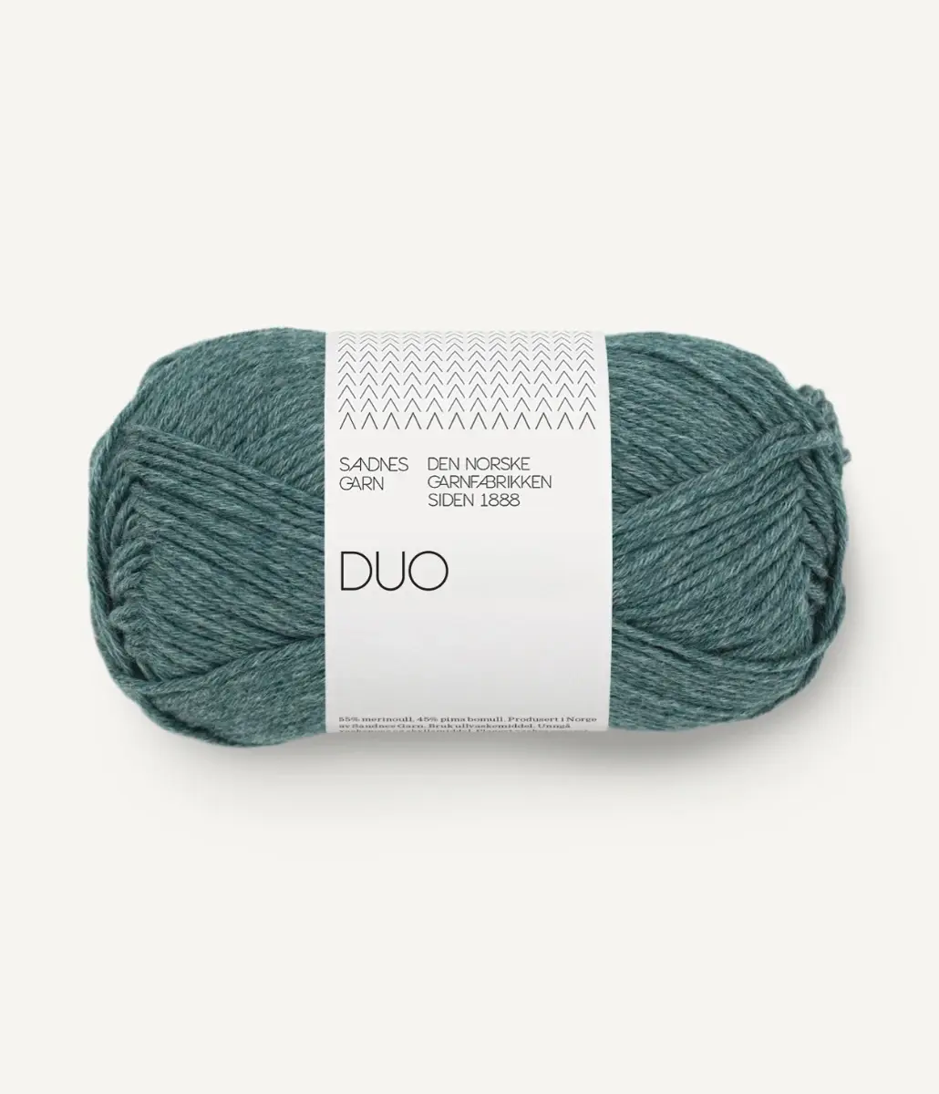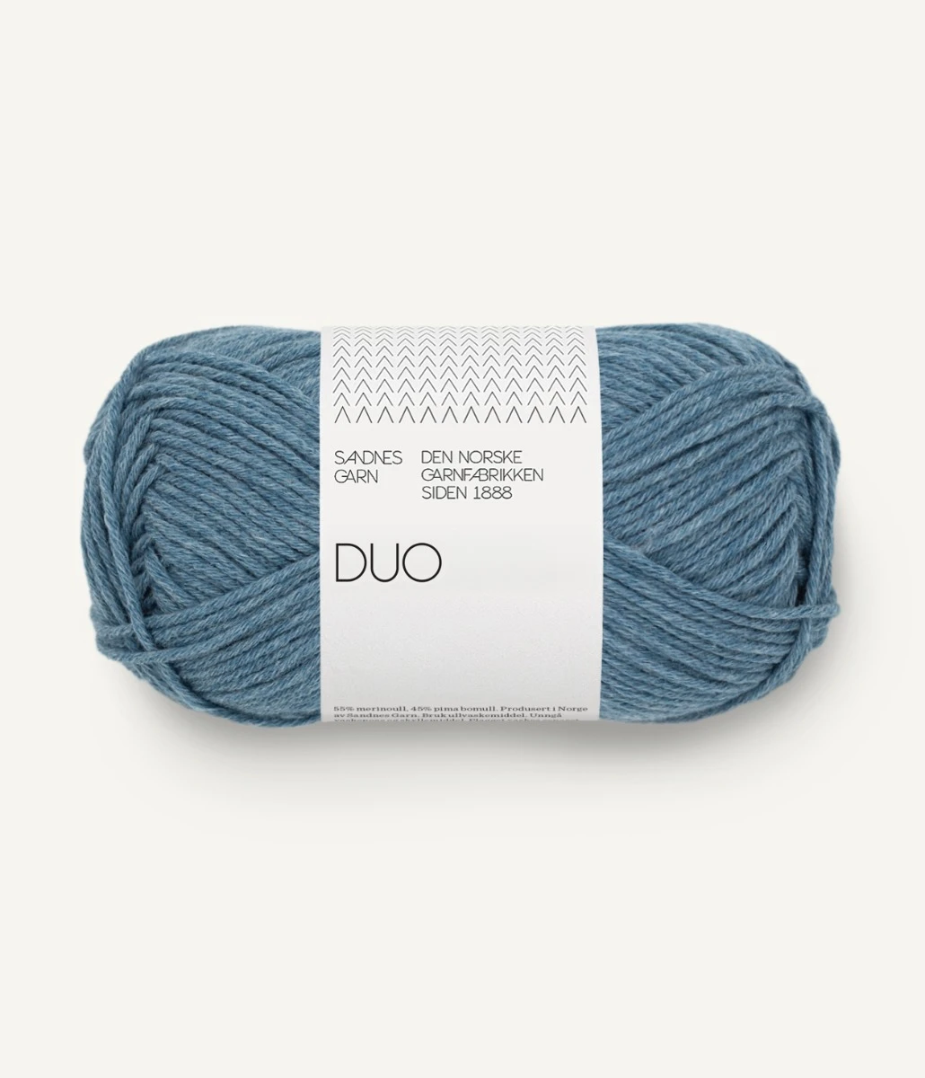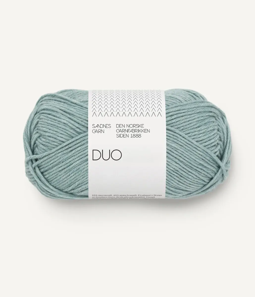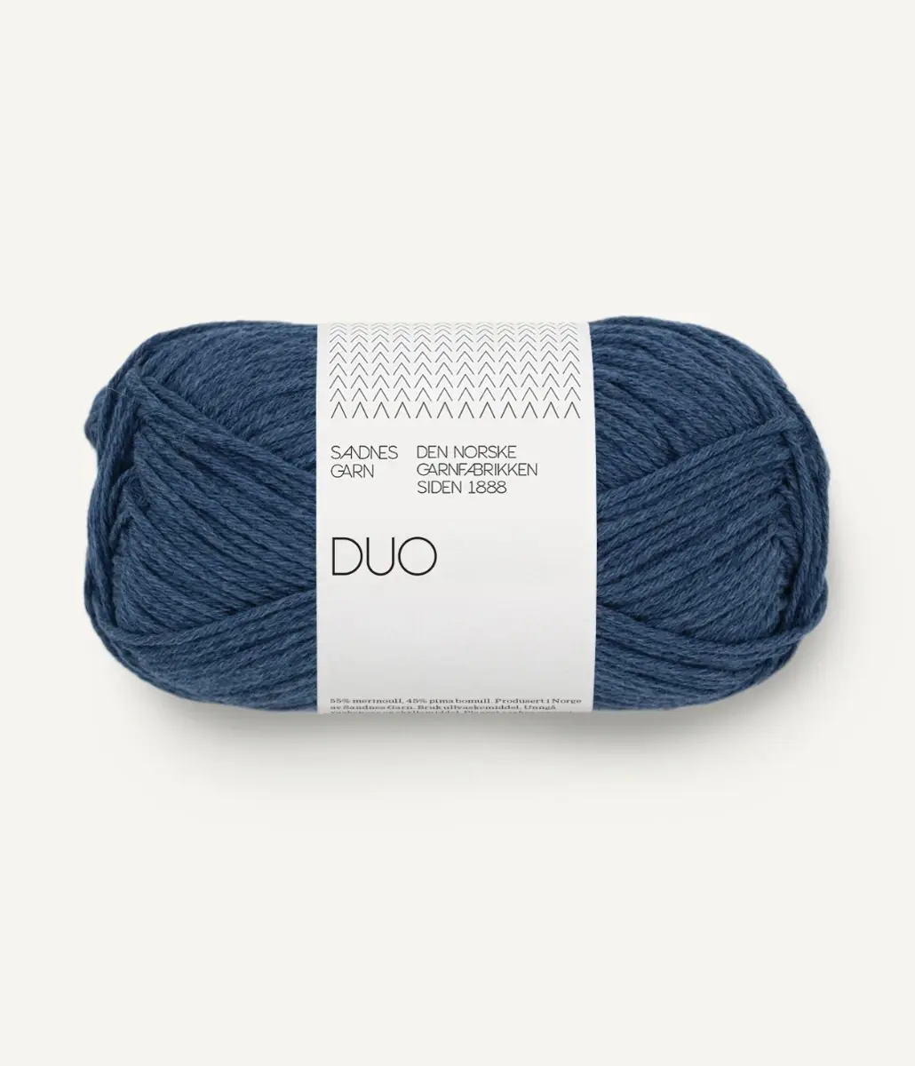 Duo is a soft blend of cotton and merino. It has the look and feel of cotton, with bouncy merino for memory. Machine washable, this yarn is perfect for all garments for all ages.