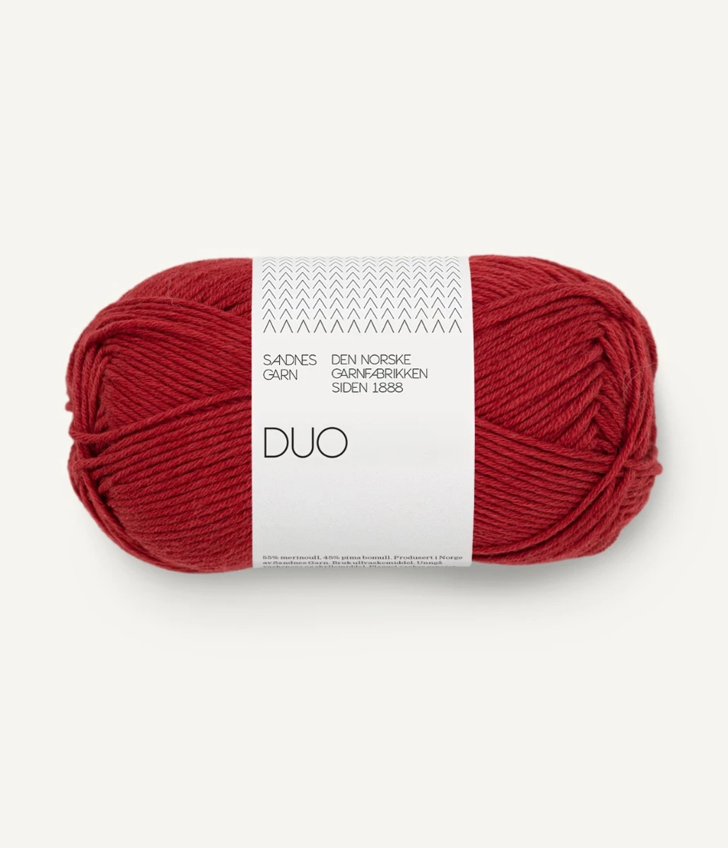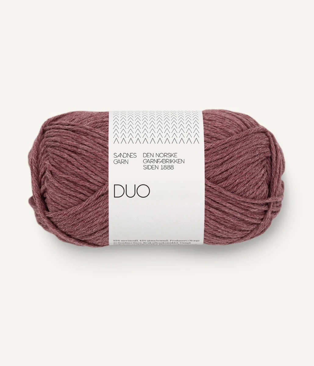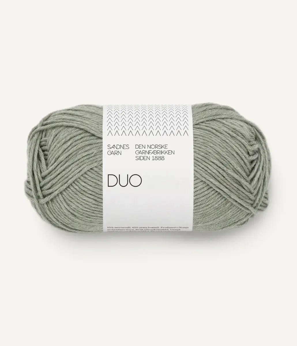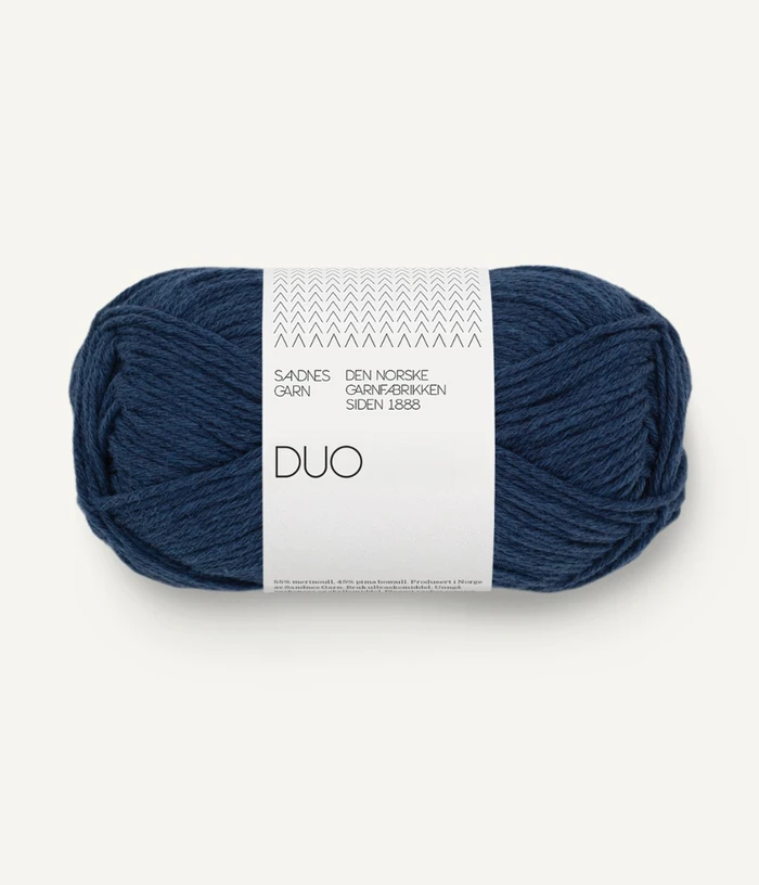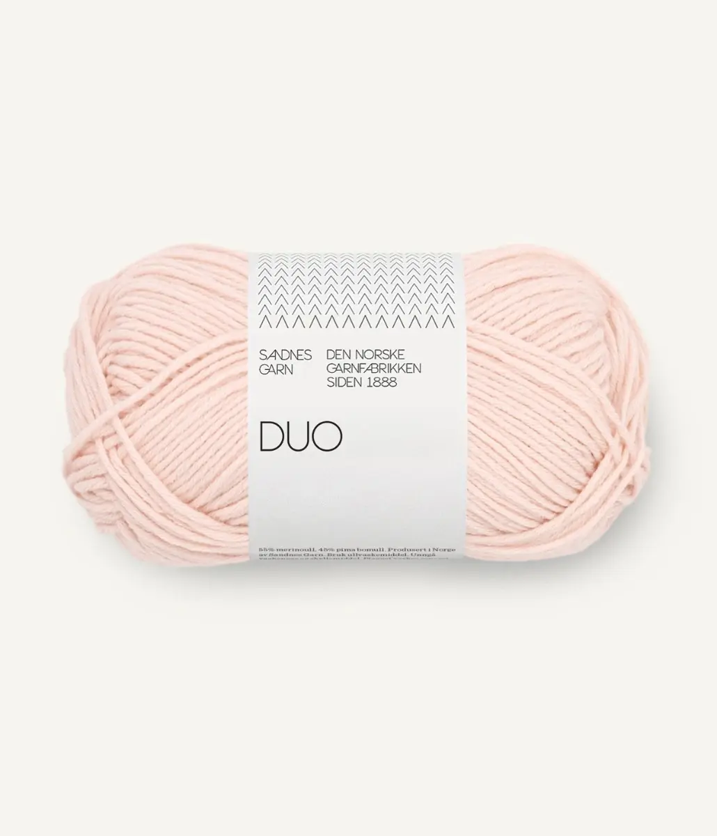 Duo is a soft blend of cotton and merino. It has the look and feel of cotton, with bouncy merino for memory. Machine washable, this yarn is perfect for all garments for all ages.