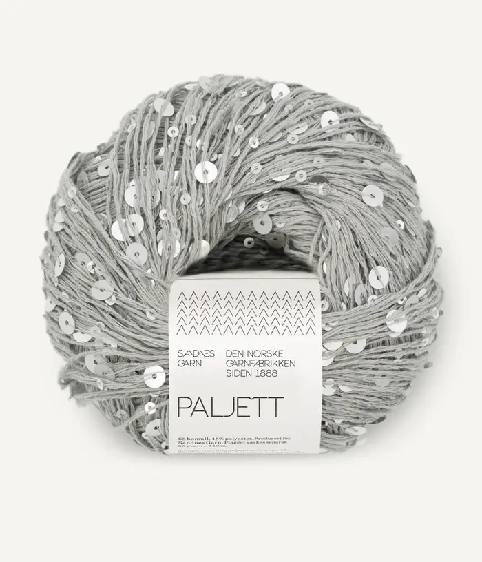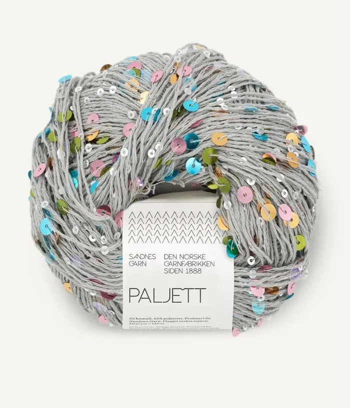 The yarn is sold in 50 gram balls and contains 55% cotton and 45% polyester. 50 grams gives 140 metres of glitter and joy for small and large projects whether you knit PALJETT alone or use it as a companion thread. Here you just have to let your creativity flow, and experiment with expression and needle thickness.