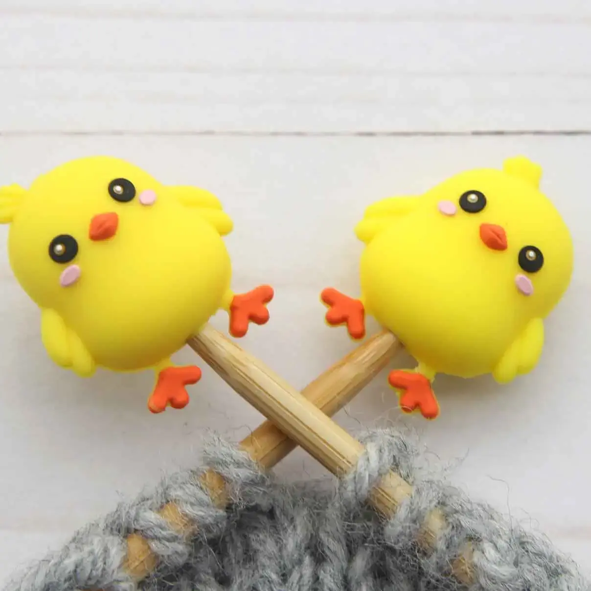 These adorable stitch stoppers go on the end of your knitting needles to prevent your stitches from coming undone when your project is set down.