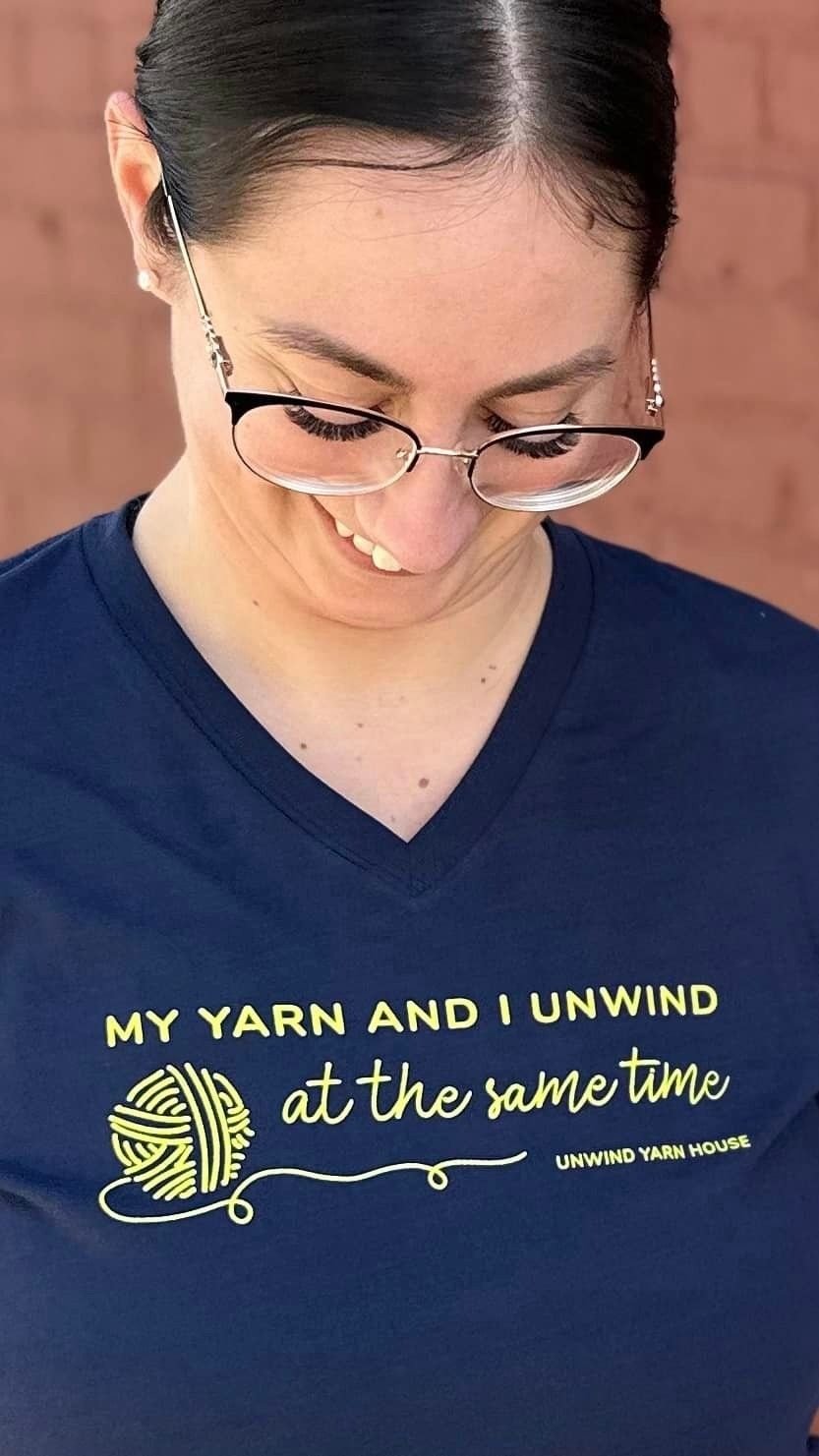 Celebrate your craft and community with a "My Yarn and I Unwind at the Same Time" T-shirt!